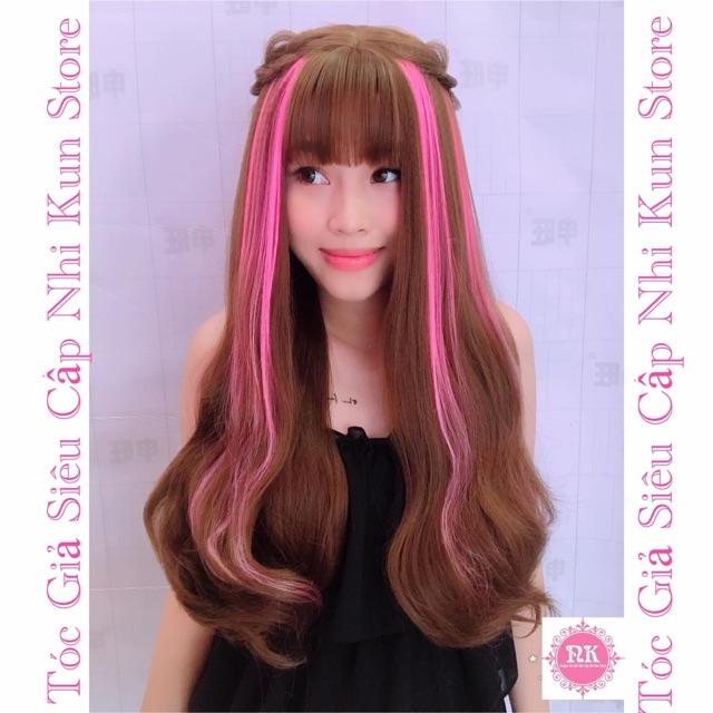 ✨Tóc giả cao cấp moc line hồng phấn- tặng lứoi chùm tóc