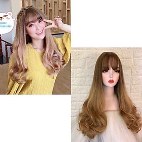 ✨Tóc giả nguyên đầu️ vàng kim ombre nâu vàng- tặng lưới chùm tóc
