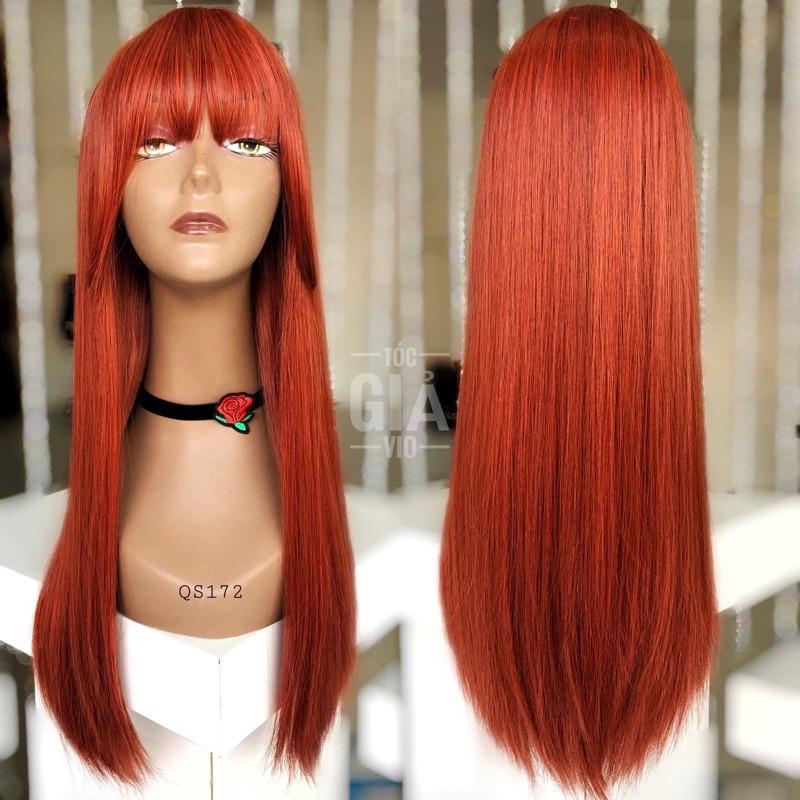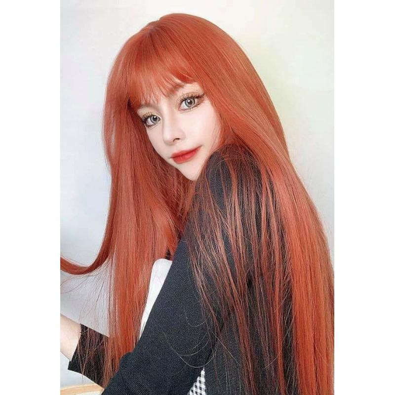✨tóc giả nữ màu đỏ cam - Tặng lưới chùm tóc