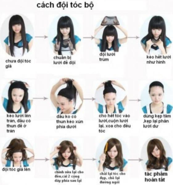 --> Khi tóc bị rối nên xịt dưỡng cho tóc, sau đó chia tóc thành từng tép nhỏ và tiến hành chải từng tóc tóc cho suôn mượt Sau khi dùng nên chải tóc, bỏ vào bịch nilong và bảo quản tóc ở nơi khô thoáng để tóc bền hơn và ko bị sơ dối
