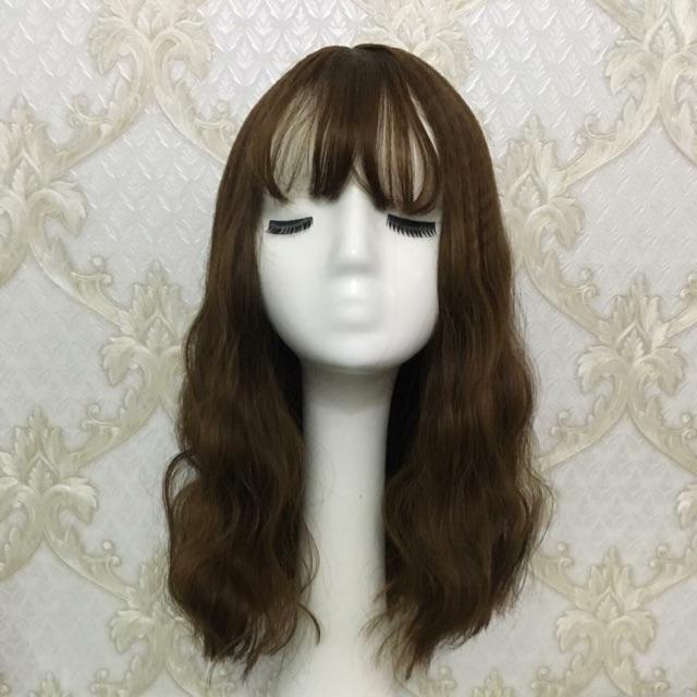 ✨Tóc giả nữ️ tóc nguyên đầu xù sóng lửng - Tặng lưới chùm tóc