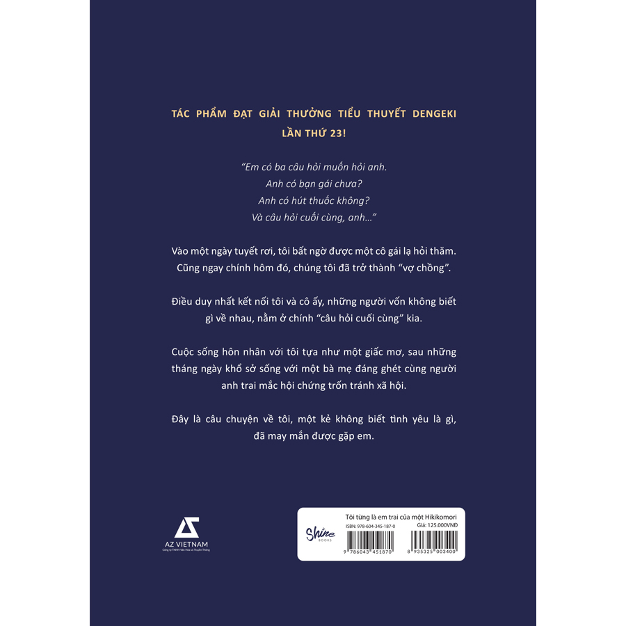 Tôi Từng Là Em Trai Của Một Hikikomori TÁC PHẨM ĐẠT GIẢI THƯỞNG TIỂU THUYẾT DENGEKI LẦN THỨ 23! “Em có ba câu hỏi muốn hỏi anh. Anh có bạn gái chưa? Anh có hút