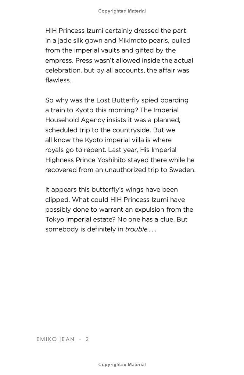 In a whirlwind, Izumi travels to Japan to meet the father she never knew and discover the country she always dreamed of. But being a princess isn’t all ball gowns and tiaras. There are conniving cousins, a hungry press, a scowling but handsome bodyguard who just might be her soulmate, and thousands of years of tradition and customs to learn practically overnight.