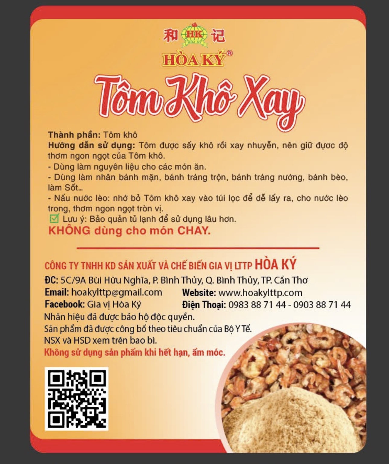 Tôm Khô Xay Thành phần : Tôm khô Hướng dẫn sử dụng : Tôm được sấy khô rồi xay nhuyễn, nên giữ đựơc độ thơm ngon ngọt của Tôm khô. Dùng làm nguyên liệu cho