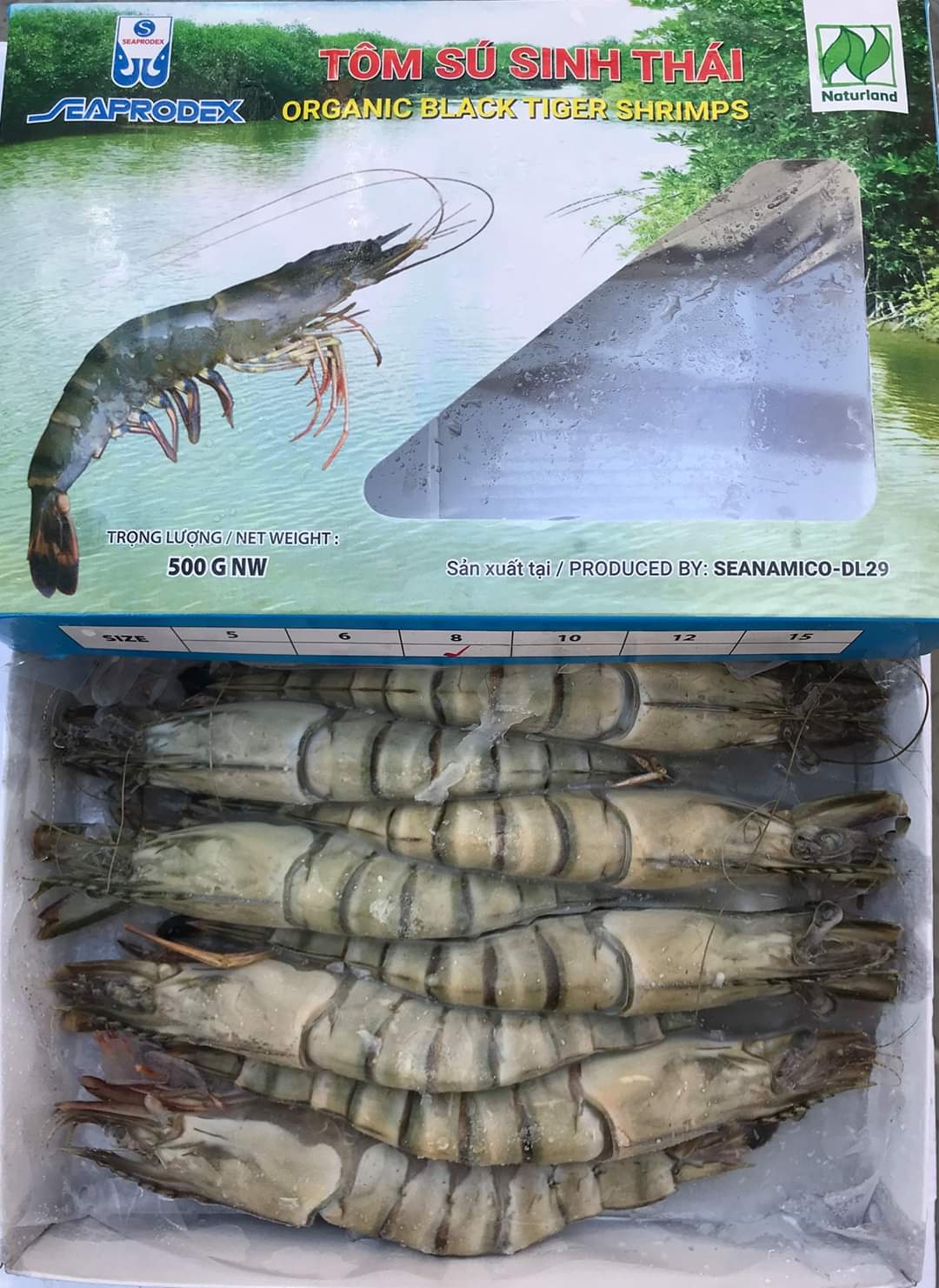 ✨Tôm sú nguyên con sinh thái Seaprodex kích cỡ 8 con/hộp, 500gr