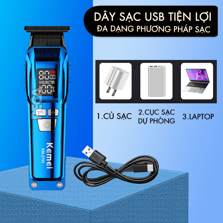 TÔNG ĐƠ CHẤN VIỀN PHIÊN BẢN CAO CẤP KEMEI KM-2795 LƯỠI MẠ CARBON DLC CAO CẤP, CÔNG SUẤT MẠNH MẼ 8W - CHÍNH HÃNG