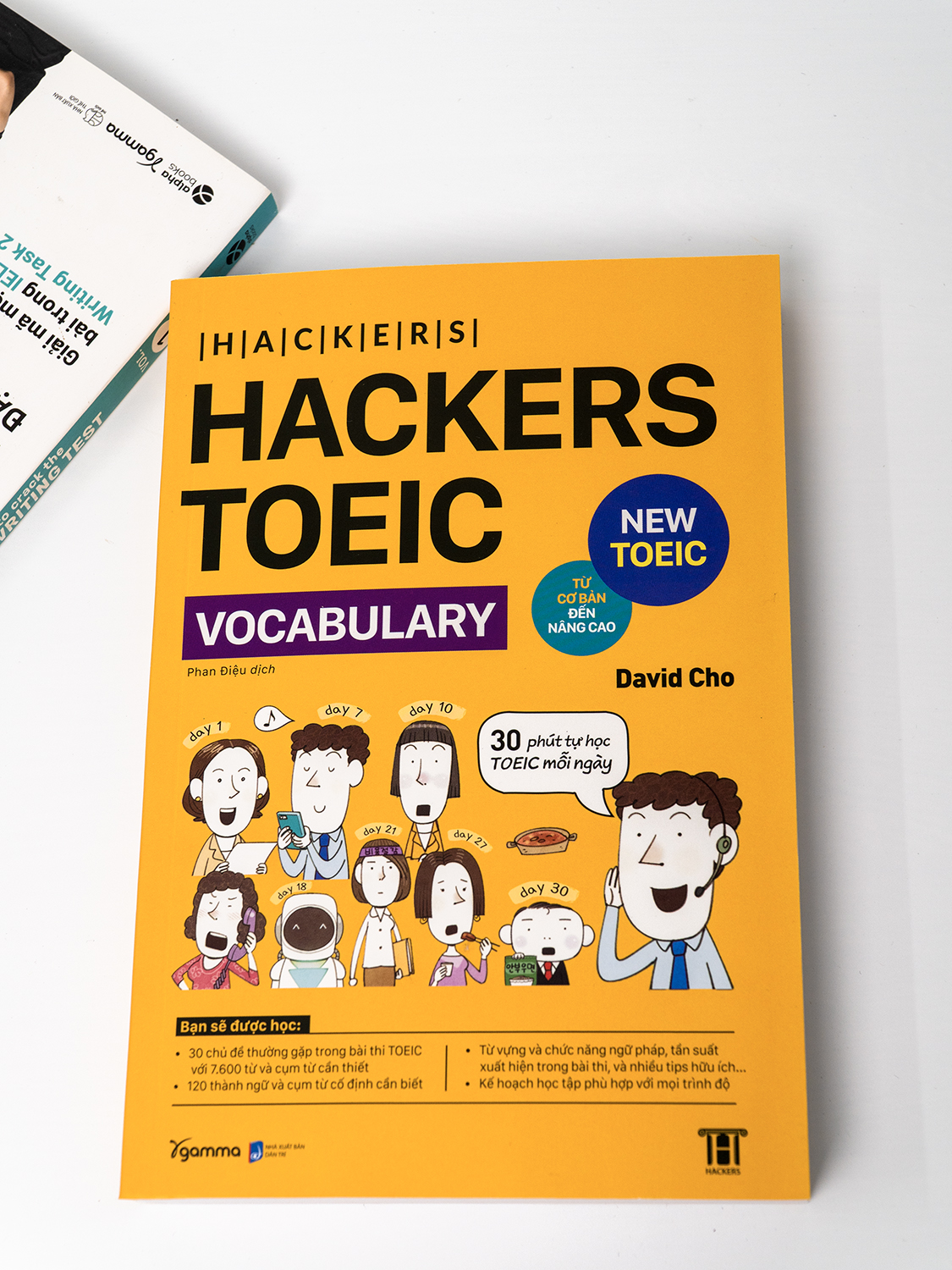 Hackers TOEIC Vocabulary là cuốn sách được thiết kế nhằm giúp người học có thể hoàn thành mục tiêu nhớ và nắm được cách sử dụng của khoảng gần 7600 từ vựng theo các chủ đề khác nhau trong vòng 30 ngày. Ngoài ra, bạn còn được cung cấp những nội dung cần thiết liên quan như: câu hỏi theo định dạng bài thi thật, các xu hướng ra đề của bài thi dạng thức mới. “120 thành ngữ và cụm từ cố định cần biết để chinh phục bài thi TOEIC” ở cuối sách cũng là một nguồn tài liệu quý giá khiến cho các câu hỏi trong bài thi TOEIC không thể làm khó bạn trên con đường chinh phục điểm số mơ ước. Đối tượng: Là cuốn sách phù hợp với mọi đối tượng Hackers TOEIC Vocabulary bao quát những nội dung phù hợp với nhiều đối tượng khác nhau, từ người mới tiếp cận đến người đã rất quen thuộc với bài thi TOEIC, thông qua cách thiết kế nội dung hợp lý với Từ vựng TOEIC cơ bản, Từ vựng TOEIC mức 800 điểm, Từ vựng TOEIC mức 900 điểm. Hãy xác định mục tiêu điểm số của mình và tập trung trau dồi vốn từ vựng cần thiết để đạt được mục tiêu đó nhanh chóng và hiệu quả nhất. Ưu điểm nổi bật: