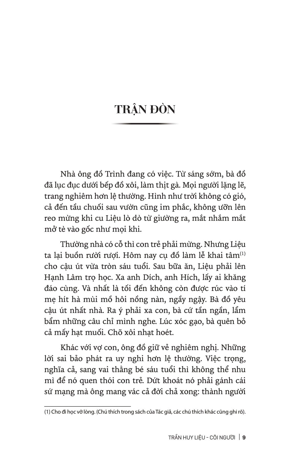 Tuổi thơ hiếu học, tuổi trẻ nhiệt thành, trung niên nhiều trăn trở, vượt lên nỗi khổ tâm riêng tư là lòng trung hiếu tận hiến cho dân tộc, quốc gia, báo chí, sử học và văn chương. TRẦN HUY LIỆU – chân dung con người “đa hệ” trong “Cõi người” do chính con trai ông thể hiệ
