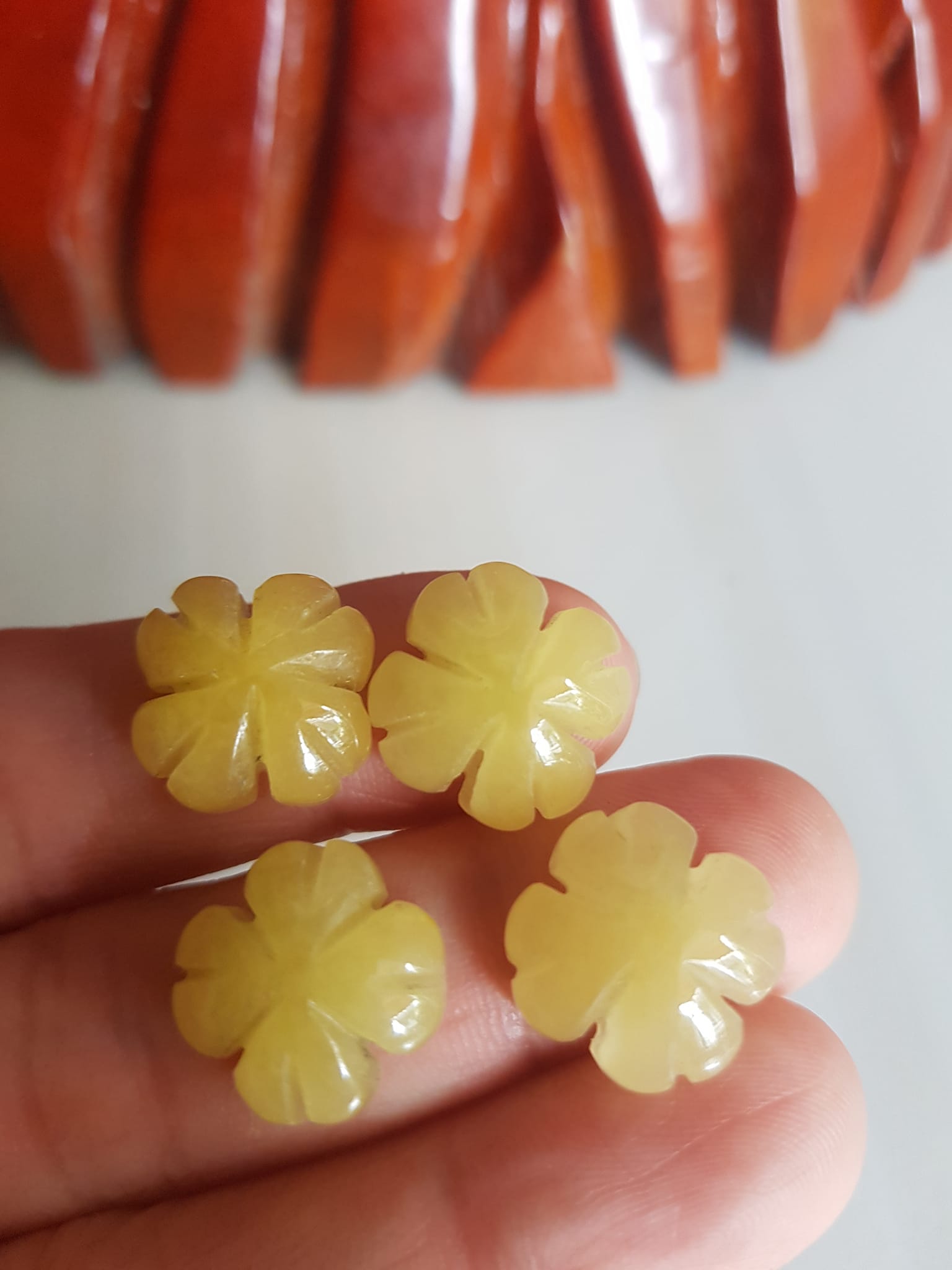 Mua tại TiktokTrang sức phối vòng tay Bông Hoa Cỏ 4 Lá Đá cẩm thạch VÀNG NHẸ NHÀNG đẹp Size bông 14mmx6mm x lỗ đk 2mm Nữ mệnh Kim Thổ Thủy phối với Vòng đeo tay, làm mặt dây chuyền, mặt nhẫn đeo ạ