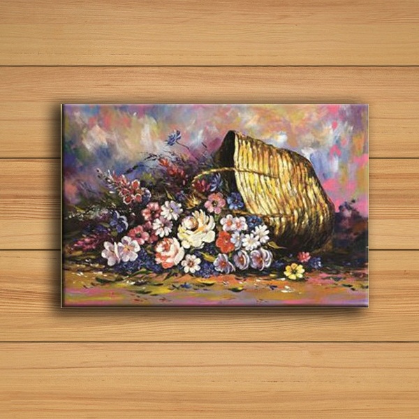 - Bức tranh vẽ một giỏ hoa đầy màu sắc với bố cục đẹp mắt, cách phối màu tạo cho bức tranh từng mảng sáng tối thật hài hòa . Bức tranh sẽ làm cho không gian gia đình bạn thêm phần sống động và đầy sắc màu.