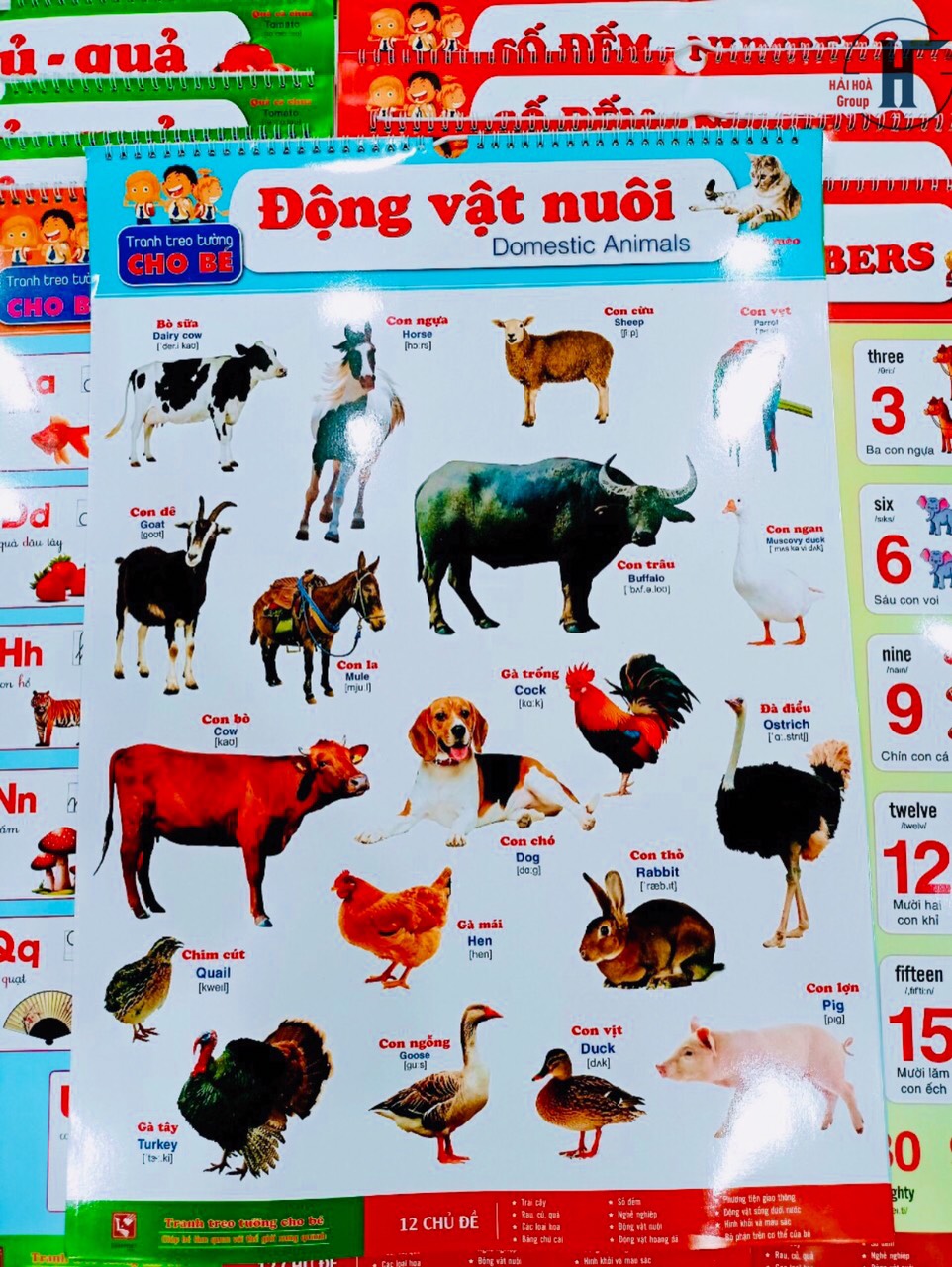 TÊN SẢN PHẨM: Bộ Tranh Treo Tường Song Ngữ (Song Ngữ) 12 CHỦ ĐỀ Cho Bé Kích thước: 40x60cm Giấy cán bóng 2 mặt Bộ Tranh Treo Tường Song Ngữ là công cụ