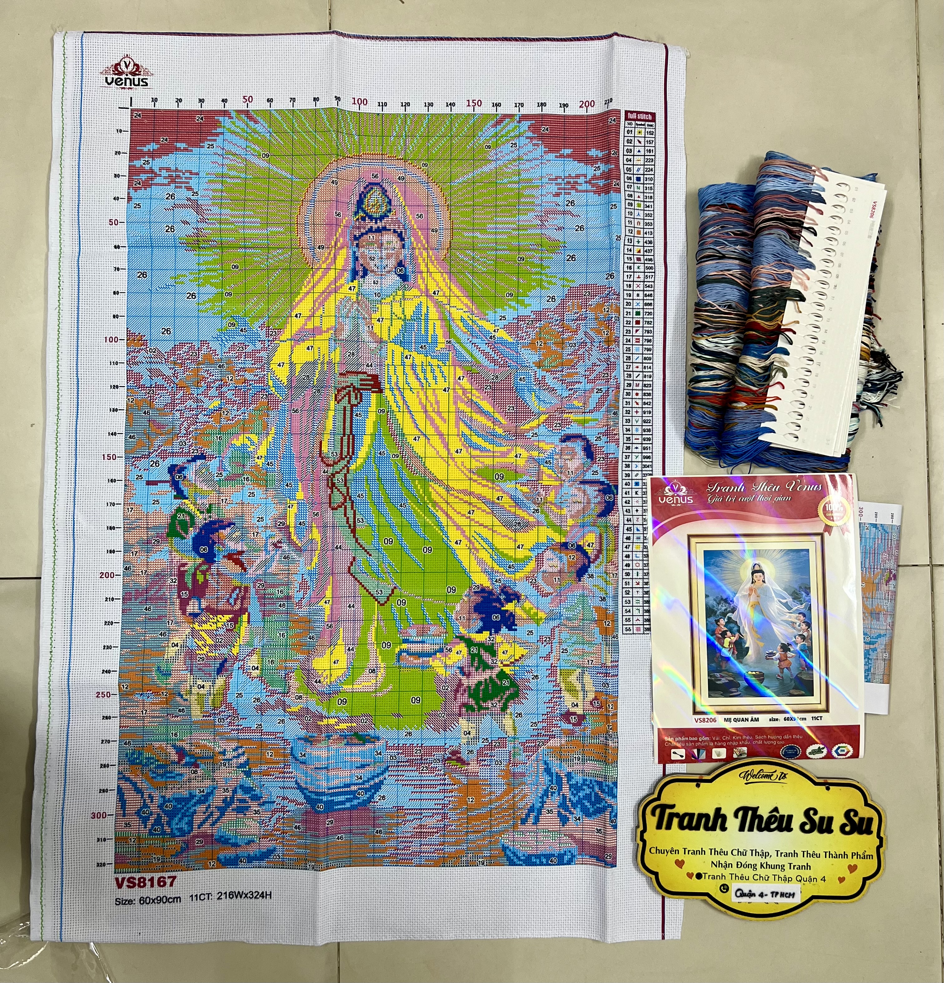Tranh thêu chữ thập chỉ lụa Phật quan âm kích thước lớn #crossstitch #review #crosstitch #tranh