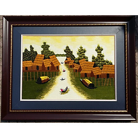 Mua tại TiktokTranh thêu tay Phong cảnh Quê Hương Bình yên Sản phẩm được thêu hoàn toàn bằng tay bằng chỉ trên nền vải. Khung tranh vân gỗ composit không bạc màu ,cong vênh, mối mọt bền đẹp cùng thời gian. Mặt tranh được lồng kính hoặc mika bảo vệ tranh. Kích thước phủ khung 55*70cm