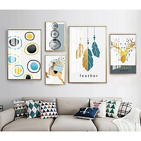 Tranh treo tường trang trí hươu nghệ thuật - Kích thước của tranh : Size 1 :50x70cmx 1 tấm +30x50x2 tấm Size 2 :60x80cm x 1 tấm +40x60x2 tấm - Chất liệu : Tráng gương