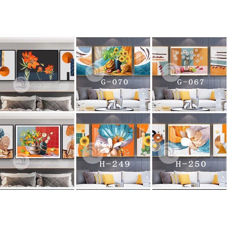 ✨Tranh treo tường, tranh canvas bộ 3 tấm mẫu tranh hoa trừu tương kèm khung cao cấp.