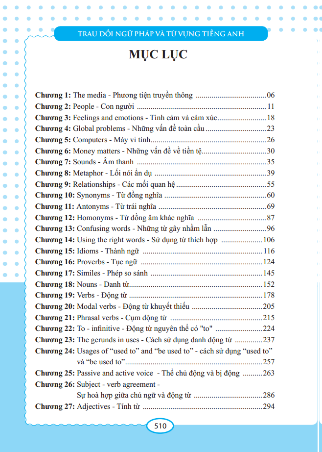 Để có thêm tài liệu thiết thực phục vụ nhu cầu học tập và luyện thi tiếng Anh, chúng tôi đã biên soạn và cho ra mắt bạn học cuốn “Trau dồi ngữ pháp và từ vựng tiếng Anh ”.