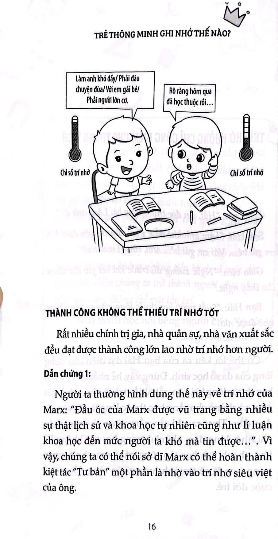 Đặc biệt cuốn sách còn cung cấp thêm 39 bài tập ghi nhớ và vai trò chơi rèn luyện trí nhớ ,để cho mẹ cùng tương tác với trẻ hy vọng cuốn sách này sẽ trở thành trợ thủ đắc lực của các bậc cha mẹ, người thầy người bạn tốt trên con đường trưởng thành của trẻ giúp trẻ khai thác tốt nhất .