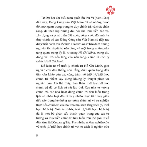 Trên cơ sở lý luận từ triết học chính trị Mác - Lênin, đường lối chính trị của Đảng Cộng sản Việt Nam, những thành tựu có giá trị của triết học chính trị đương đại và những thành tựu nghiên cứu cập nhật về triết học, triết lý chính trị Hồ Chí Minh; cùng những phương pháp nghiên cứu liên ngành của khoa học xã hội hiện đại, tác giả đã vận dụng lý thuyết chính trị học hiện đại để đi sâu nghiên cứu triết lý chính trị Hồ Chí Minh. Mạch nguồn xuyên suốt