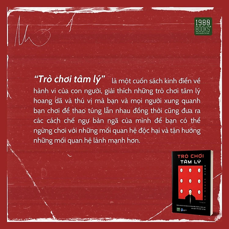- Tác phẩm bán ra hơn 5 triệu bản, được dịch sang gần 20 ngôn ngữ khác nhau. Chúng ta tham gia trò chơi mọi nơi, mọi lúc trong cuộc sống hàng ngày – trò chơi tình dục với bạn tình, trò chơi hôn nhân với bạn đời, trò chơi quyền lực với sếp và trò chơi cạnh tranh với bạn bè. “Trò chơi tâm lý” là một cuốn sách kinh điển về hành vi của con người, giải thích những trò chơi tâm lý hoang dã và thú vị mà bạn và mọi người xung quanh bạn chơi để thao túng lẫn nhau đồng thời cũng đưa ra các cách chế ngự bản ngã của mình để bạn có thể ngừng chơi với những mối quan hệ độc hại và tận hưởng những mối quan hệ lành mạnh hơn. Trong cuốn sách này, bác sĩ tâm lý Eric Berne sẽ tiết lộ tâm lý đằng sau những tương tác của chúng ta với những người xung quanh đồng thời vạch trần những thủ đoạn vô thức quen thuộc mà mỗi người chúng ta làm để đạt được điều mình muốn từ người khác. Bất kể loại trò chơi nào chúng ta đang chơi, nó thường mang tính thao túng và chúng ta thậm chí không nhận ra mình đang chơi. Bạn sẽ nhớ lại những trò chơi kinh điển như trận chiến giữa các cặp đôi chết người “If it Wen’t For You” hoặc những trò chơi tán tỉnh như “Let's You and Him Fight”. Được phát hành vào năm 1965, sự nổi tiếng cuồng nhiệt của cuốn sách đã khiến nó trở thành một trong những cuốn sách tâm lý học đại chúng có ảnh hưởng nhất mọi thời đại. Cuốn sách sẽ khiến bạn nhận ra một số điều về bản chất con người mà bạn luôn biết nhưng chưa bao giờ thực sự nghĩ đến. Một số nhận xét về cuốn sách: “ Một cuốn sách quan trọng . . . một danh mục rực rỡ, thú vị và rõ ràng về sân khấu tâm lý mà con người diễn đi diễn lại nhiều lần.” Tạp chí Cuộc sống, 1965. “ Một cuốn sách hấp dẫn. Đây không hẳn là những trò chơi 'vui vẻ'. Trên thực tế, hầu hết chúng là những nghi thức thần kinh dựng tóc gáy, trong đó những căng thẳng được giải tỏa và đạt được sự hài lòng, thường là phải trả giá bằng những người khác.” Tạp chí Newsweek. “ Nguyên bản, đáng lo ngại và thú vị, một đoạn đối thoại chính… Nhiều trò chơi trong số này là nỗi kinh hoàng ngoài đời thực, được chơi một cách nghiêm túc chết người ở những nơi công cộng, phòng khách, phòng ngủ, phòng tư vấn.” Tòa án Chicago.