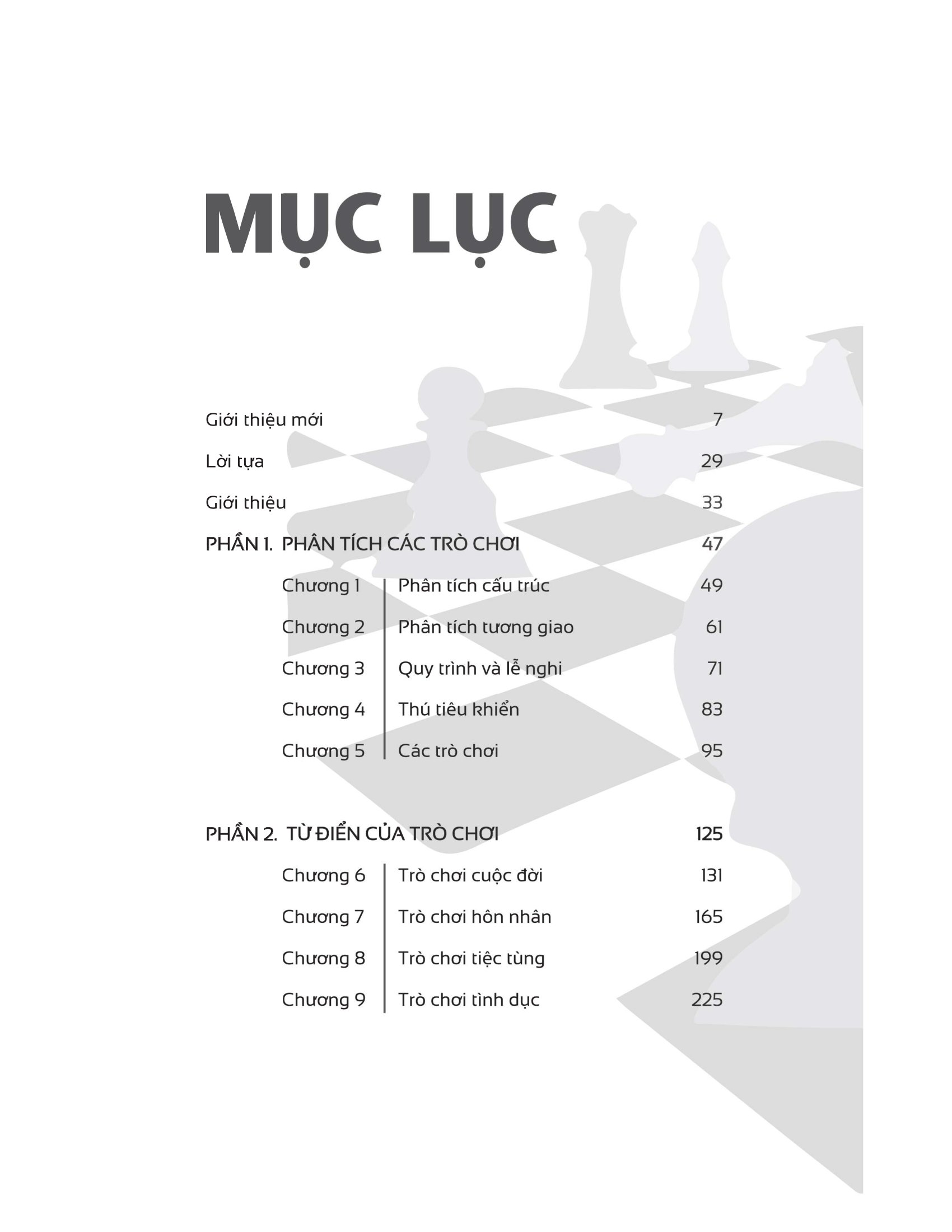 Chúng ta tham gia trò chơi mọi nơi, mọi lúc trong cuộc sống hàng ngày – trò chơi tình dục với bạn tình, trò chơi hôn nhân với bạn đời, trò chơi quyền lực với sếp và trò chơi cạnh tranh với bạn bè.