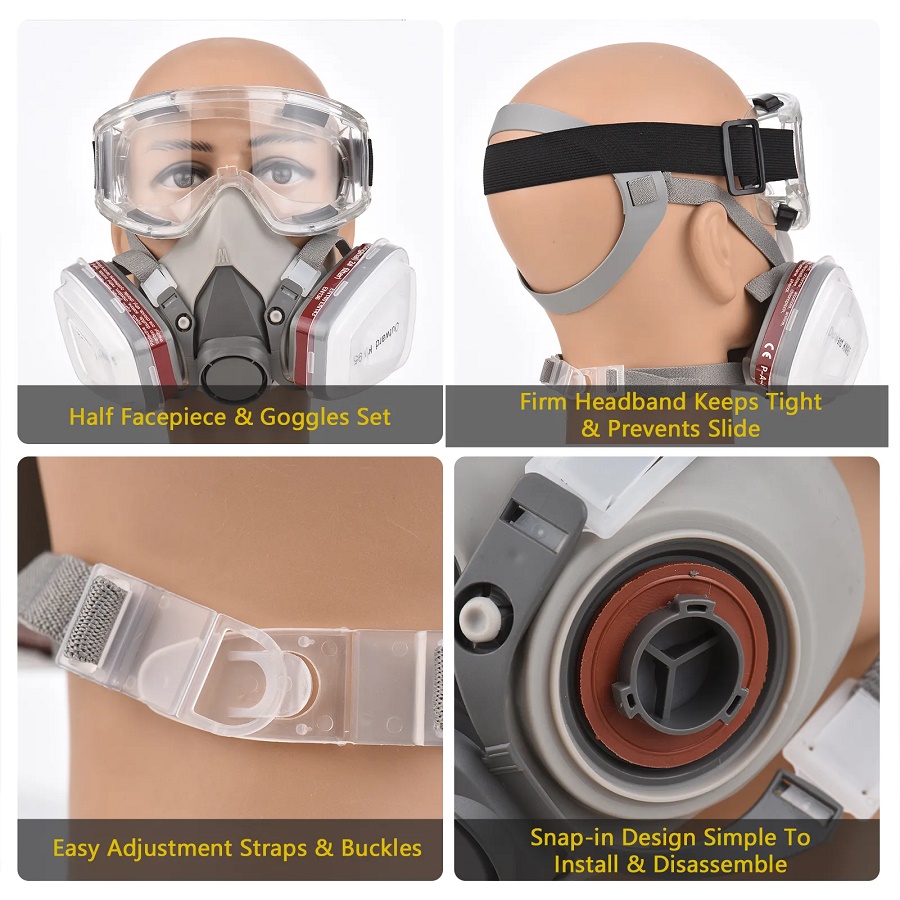 ✨Trọn Bộ Mặt Nạ Chống Độc 3M 6200 Kèm Kính (Phun Thuốc Trừ Sâu, Phun Sơn, Chống Khói Bụi Mịn Và Hóa Chất)
