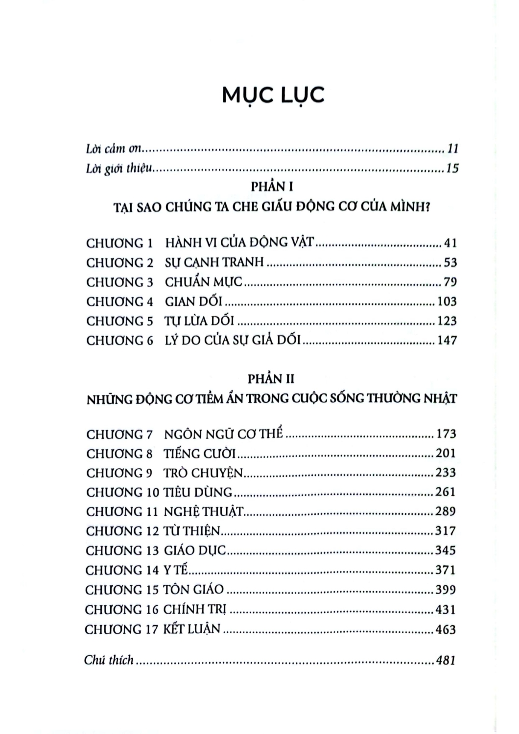 Tuy nhiên, càng ngó lơ những toan tính nội tâm, chúng ta càng mù mờ trong việc thấu hiểu bản chất và hành vi của người khác và của chính mình. Vì thế, cuốn sách này ra đời để đối diện với những toan tính ấy - lần theo, khám phá những góc khuất và soi rọi những động cơ tâm lý phức tạp của con người. Tại sao chúng ta cười? Tại sao các nghệ sĩ phải ăn mặc gợi cảm? Tại sao chúng ta thích được nói hơn lắng nghe?