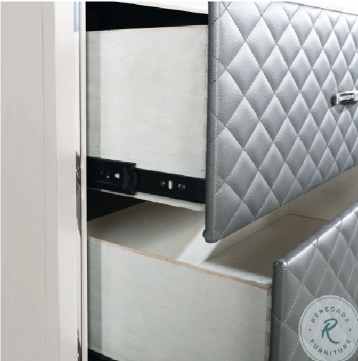 - Khung Tủ màu trắng + mặt trước ngăn kéo bọc nệm màu trắng.
