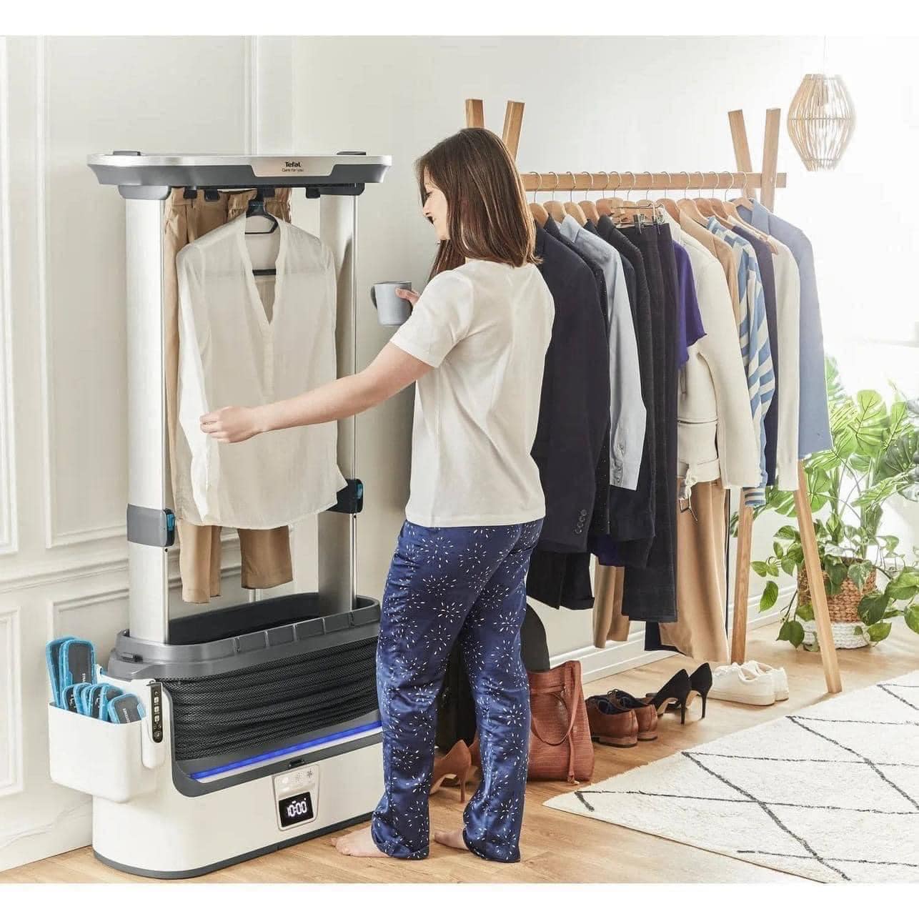 ĐÁNH BAY MỌI VẾT NHĂN NHÀU : Chỉ cần treo tối đa 3 chiếc quần áo để có kết quả mịn màng trong vòng chưa đầy 10 phút, hoặc tăng thời gian lên 30 phút để loại bỏ ngay cả những nếp nhăn cứng đầu nhất