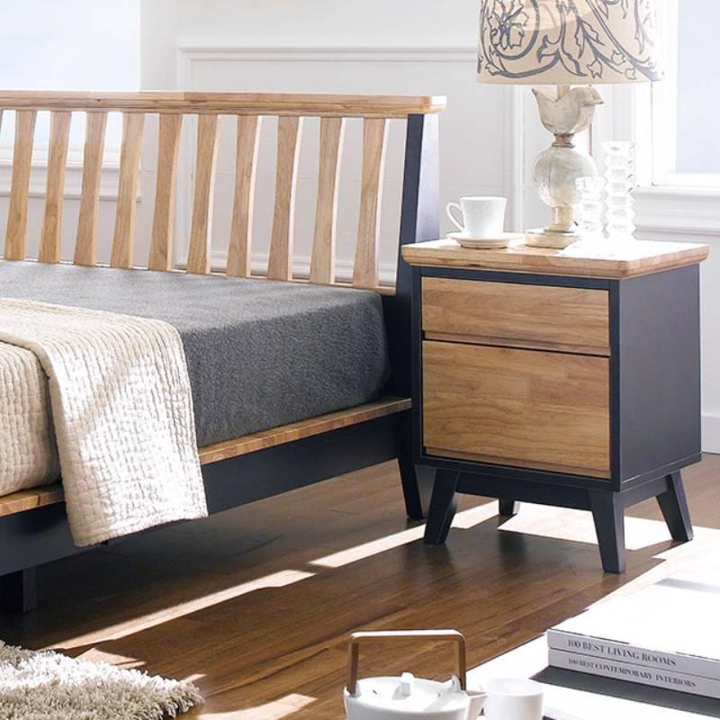 Tủ đầu giường 2 ngăn kéo NB-Blue làm từ chất liệu gỗ cao su thiên nhiên, có sẵn tại Việt Nam và rất được tin dùng tại các nước Châu Á như Nhật Bản, Hàn quốc…Thiết kế nhỏ gọn và thanh lịch, với phần nóc tủ dày dặn sẽ là nơi lý tưởng để đặt một chiếc đèn ngủ, giúp tô điểm không gian thêm đẹp mắt. Các chi tiết góc cạnh được trau chuốt tỉ mỉ và tinh tế, dáng chân thon gọn. Hai ngăn kéo tủ rộng rãi được chế tác thủ công, kết cấu ghép mộng cực kỳ chính xác, đáp ứng lượng lưu trữ tuyệt vời. Đây là một phần nội thất thuộc bộ sưu tập NB-Blue hiện đại, đặc trưng bởi màu sơn xanh navy nổi bật và màu nâu gỗ tự nhiên tại các mặt hộc ngăn kéo, phù hợp với nhiều phong cách khác nhau trong phòng ngủ, phòng khách...