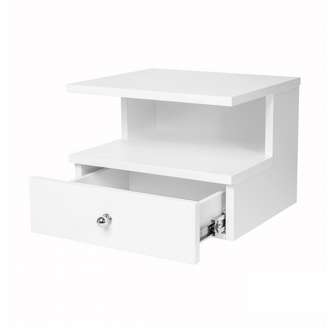 - Kệ tủ đầu giường hình vuông có hộc kéo - Chất liệu: ván gỗ HMR (viết tắt của High Moisture Resistence) lõi xanh chống ẩm, chống thấm nước phủ melamine, phun sơn trắng bóng