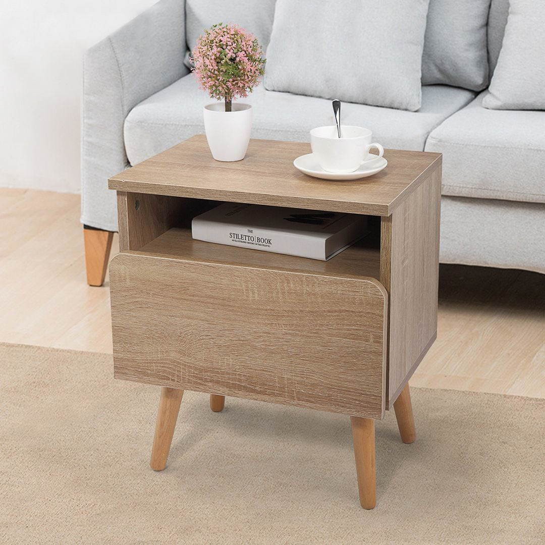 THÔNG TIN SẢN PHẨM - Tên sản phẩm: Tab đầu giường phong cách Nordic - Chất liệu: Gỗ MDF phủ melamin, chân gỗ sồi tự nhiên - Màu sắc: Trắng - Vân gỗ - Cấu