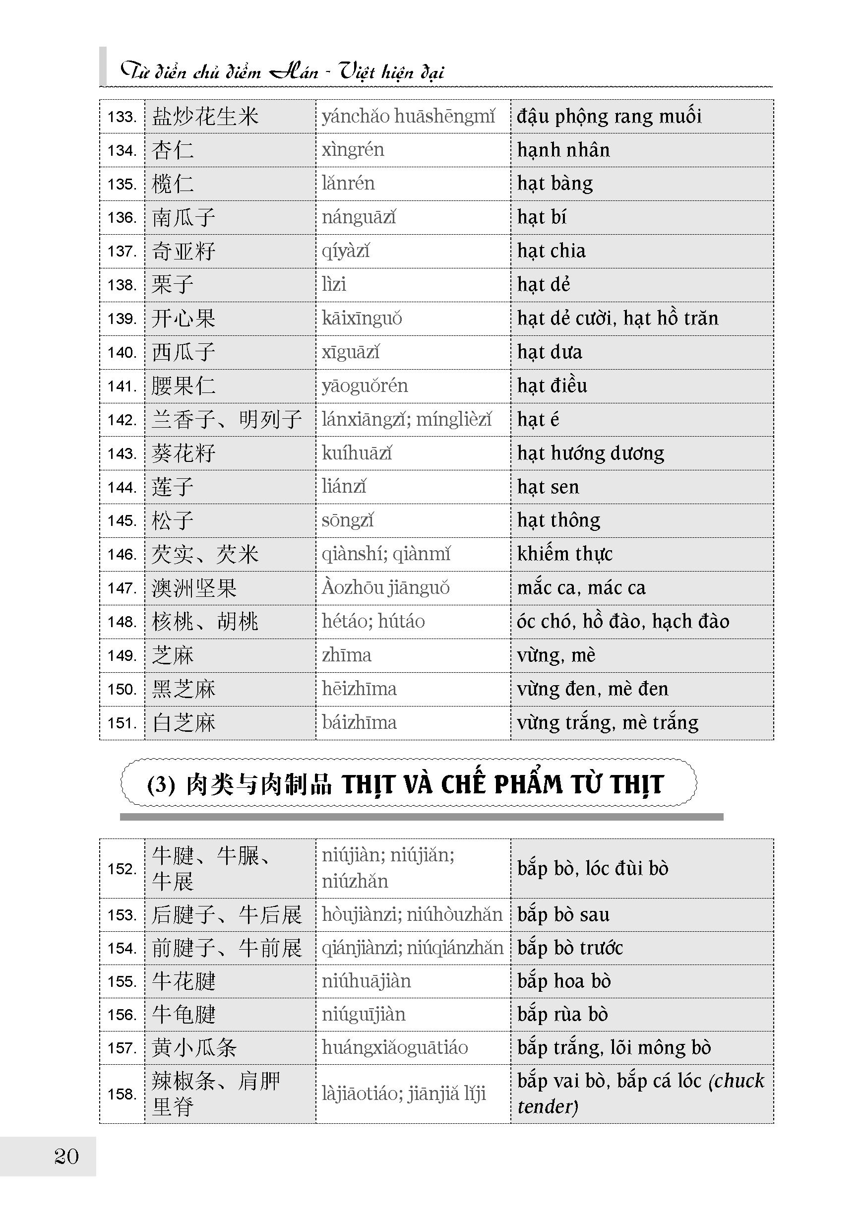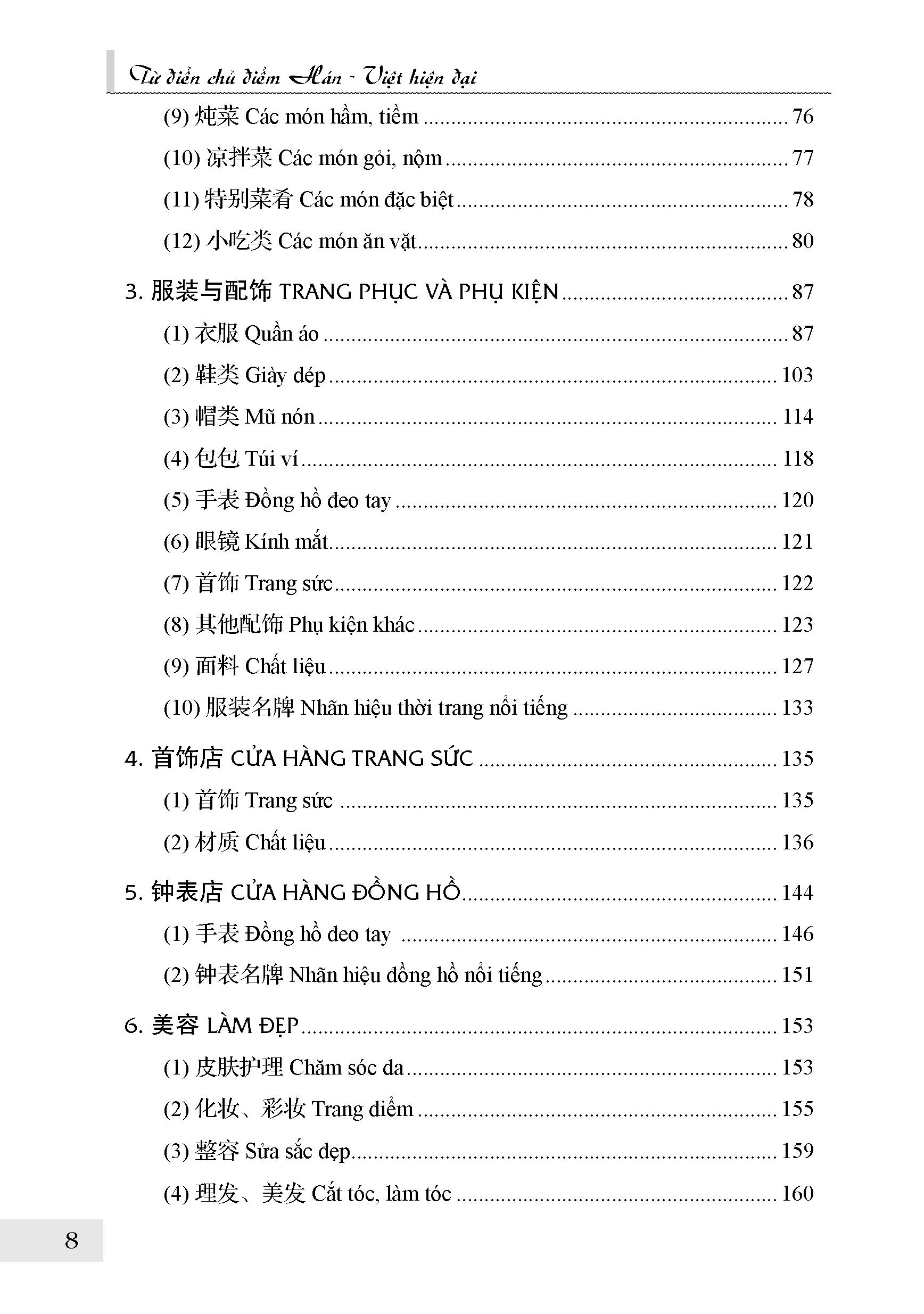 Lần tái bản này, cuốn từ điển đã được sửa chữa bổ sung nhiều về nội dung. Thứ nhất, chúng tôi đã rà soát sửa chữa những lỗi biên tập và in ấn còn sót lại ở lần xuất bản trước, đồng thời bổ sung thêm khá nhiều từ ngữ mới rất bổ ích ở các chủ đề (đặc biệt là các chủ đề Thực phẩm, Trang phục và phụ kiện, Cửa hàng điện máy). Thứ hai, chúng tôi đã gộp chung nhiều chủ điểm có liên quan với nhau thành một chủ điểm lớn (trong đó có phân chia thành những chủ điểm nhỏ) để cấu trúc cuốn sách được gọn gàng hơn. Thứ ba, chúng tôi đã đưa thêm một số chủ đề mới mà người sử dụng tiếng Hán ở Việt Nam thường gặp như các món ăn Việt Nam, vật liệu gỗ, điện thoại và máy tính… Nhận thấy đây là những chủ đề rất cần thiết trong khi hầu như không có tài liệu tham khảo, chúng tôi đã mạnh dạn biên soạn để bổ sung vào từ điển, rất mong có thể đáp ứng được phần nào nhu cầu của độc giả.