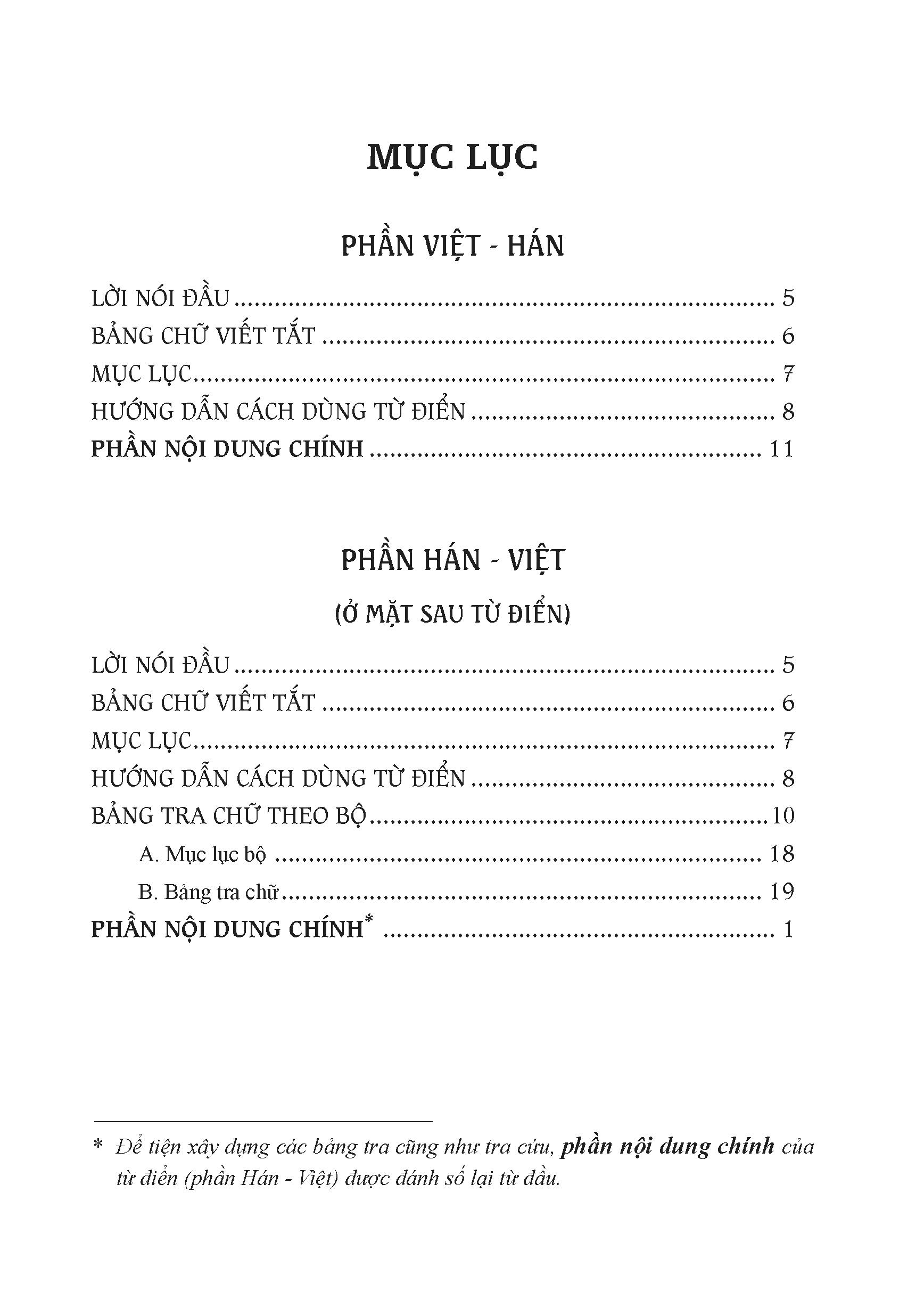 Khổ 10x19, bìa mềm, 1416 trang, in giấy trắng đẹp Để đáp ứng nhu cầu có công cụ đối chiếu hai ngôn ngữ Việt – Hán, chúng tôi đã biên soạn hai cuốn từ điển