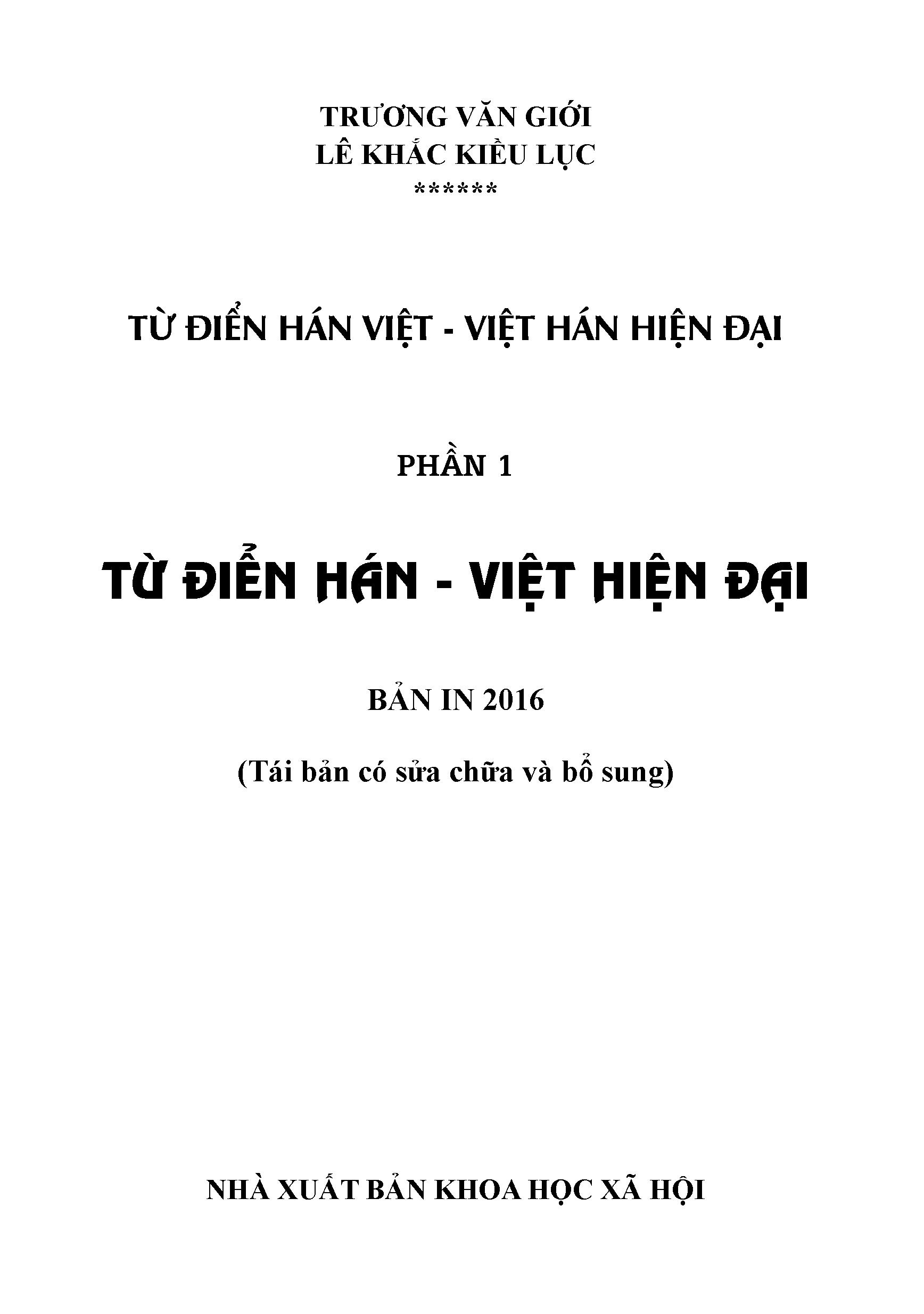 Sách: Từ Điển Hán Việt Hiện Đại Tác giả: Đỗ Văn Nhân (Chủ biên) - Hồ Ngọc Dung Nhà phát hành: Trung Tâm Kinh Doanh Xuất Bản Và Phát Hành Sách Nhà xuất bản: NXB