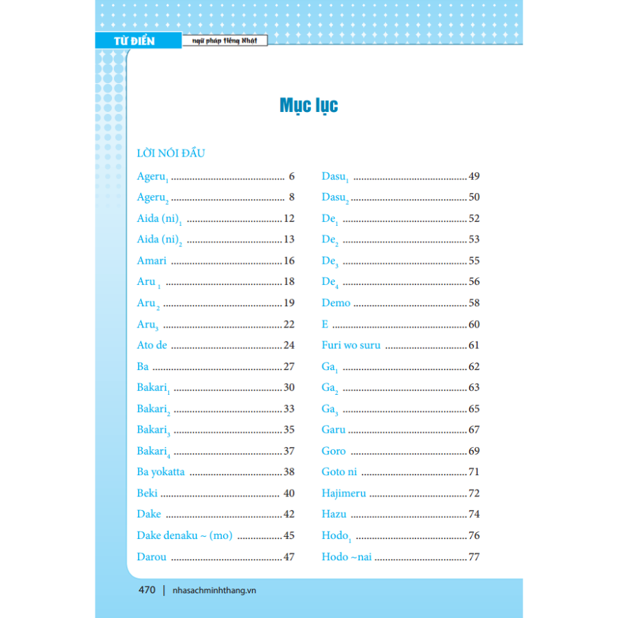 Thấu hiểu được vấn đề này chúng tôi đã dày công tìm hiểu và biên soạn cuốn giáo trình Từ Điển Ngữ Pháp Tiếng Nhật. Cuốn giáo trình bao gồm khoảng 300 mẫu câu từ trình độ N5 - N3. Ở mỗi cấu trúc đều có công thức kết hợp, ý nghĩa, cách sử dụng, rất nhiều ví dụ sinh động sát thực tế kèm theo, và đặc biệt ở phần chú ý chúng ta sẽ được so sánh với những biểu hiện có ý nghĩa tương tự hoặc liên quan.