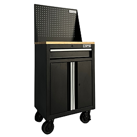 Tủ dụng cụ CSPS 61cm - 01 hộc kéo màu đen bánh xe ván gỗ vách lưới (tay cầm trắng)