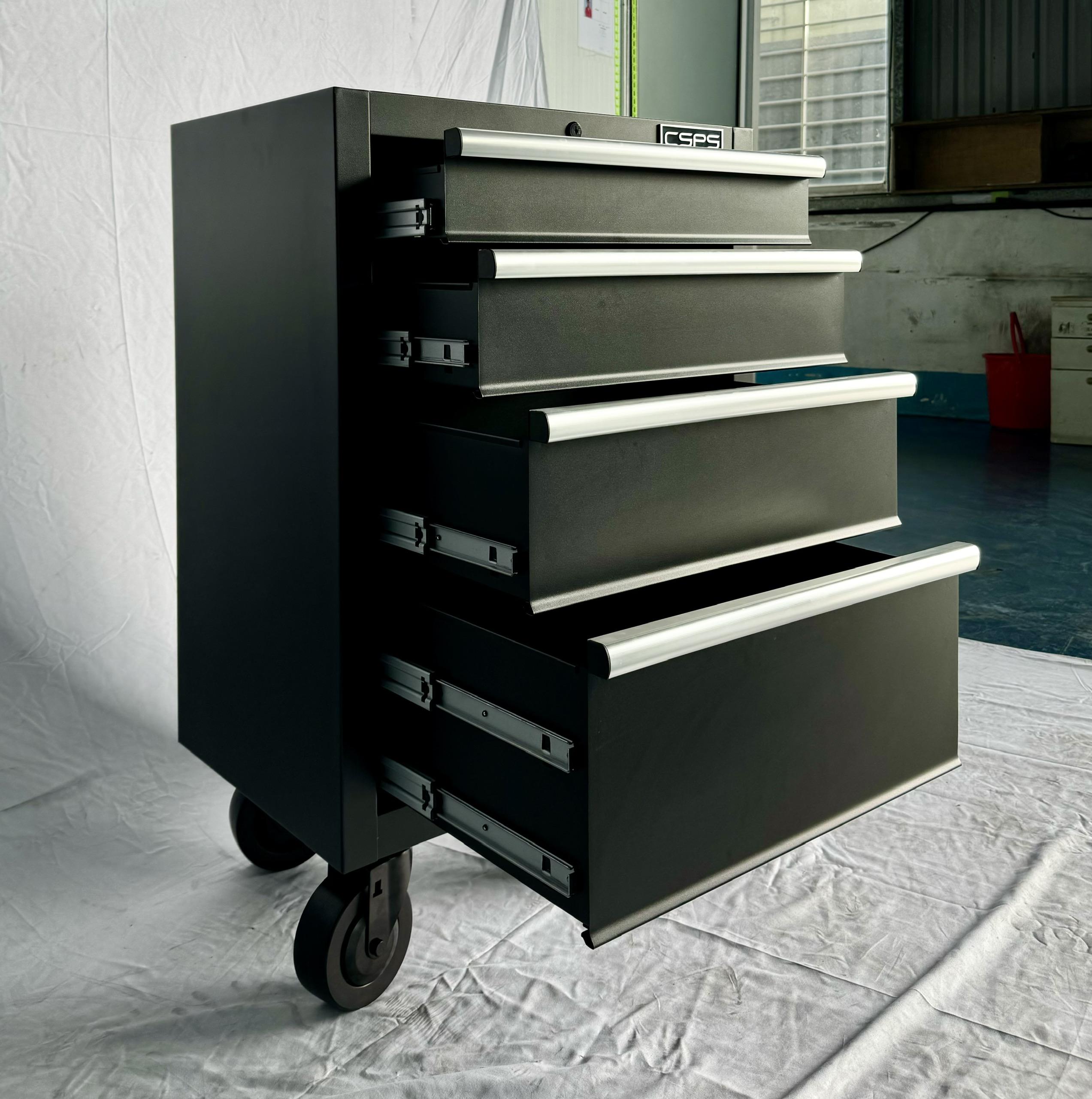✨Tủ dụng cụ CSPS 61cm - 04 hộc kéo màu đen bánh xe (tay cầm trắng)