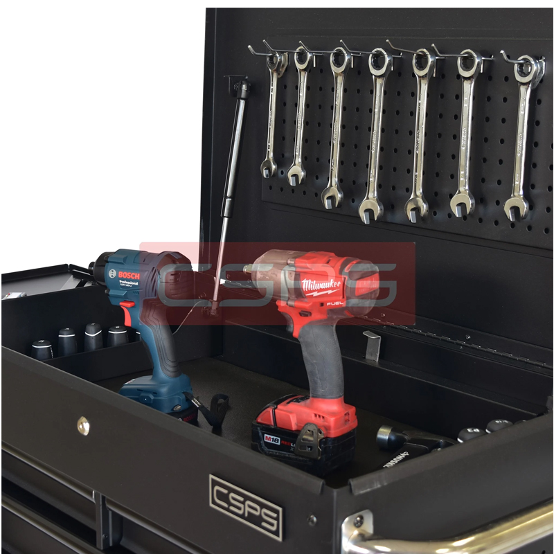 Tủ dụng cụ CSPS 7 ngăn kéo, mặt ván gỗ và vách lưới chất lượng cao. THÔNG SỐ KỸ THUẬT 1 THÔNG SỐ CHUNG Kích thước sản phẩm: 76.4 cm Ngang x 46.2cm Sâu x