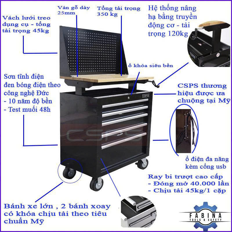 ✨Tủ dụng cụ đồ nghề CSPS 7605 76 cm – 05 hộc kéo kèm vách lưới
