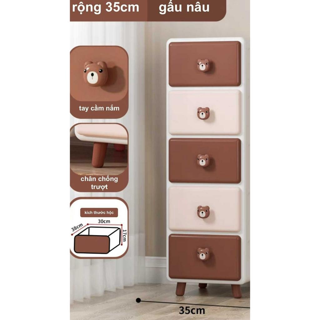 Tủ đựng đồ cho bé , tủ nhựa gấu thỏ ngăn kéo 4 tầng đựng quần áo gấu nâu Brown và thỏ hồng, tủ vịt con, tủ tay nắm mây thiết kế theo phong cách