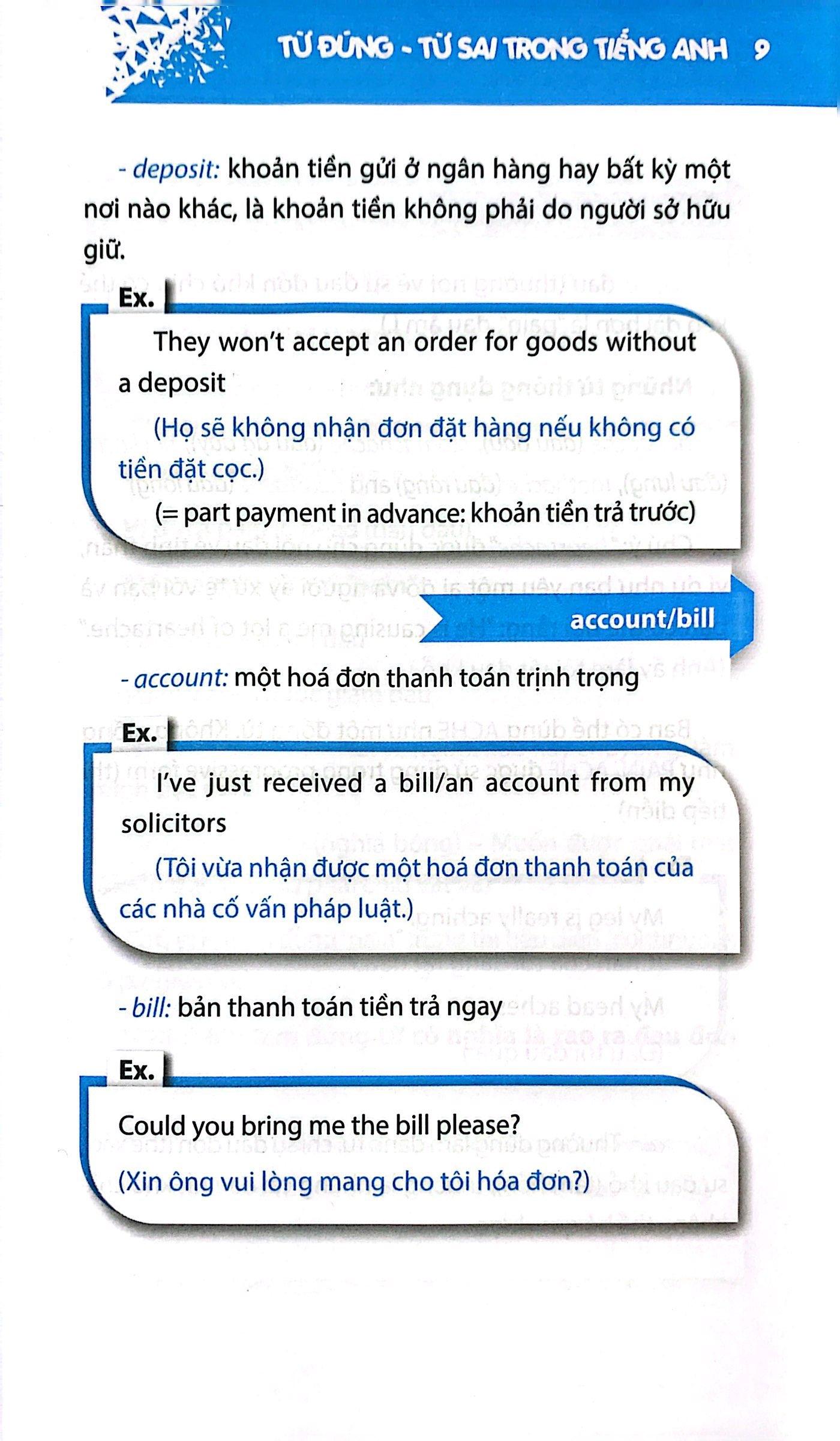 Sách sẽ giải thích đầy đủ về những cặp từ đúng sai dùng trong tiếng anh.