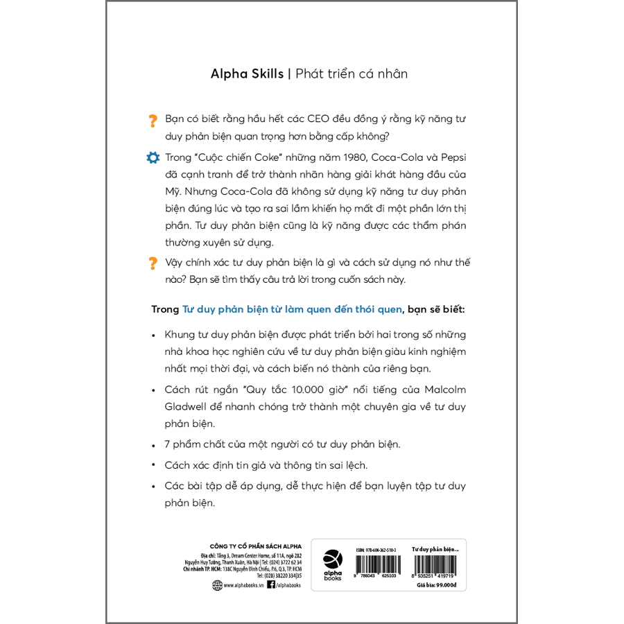 Tư Duy Phản Biện Từ Làm Quen Đến Thói QuenCông Ty Phát Hành: Alpha Books ( Sách Bản Quyền )  QUYỀN LỢI KHÁCH HÀNG