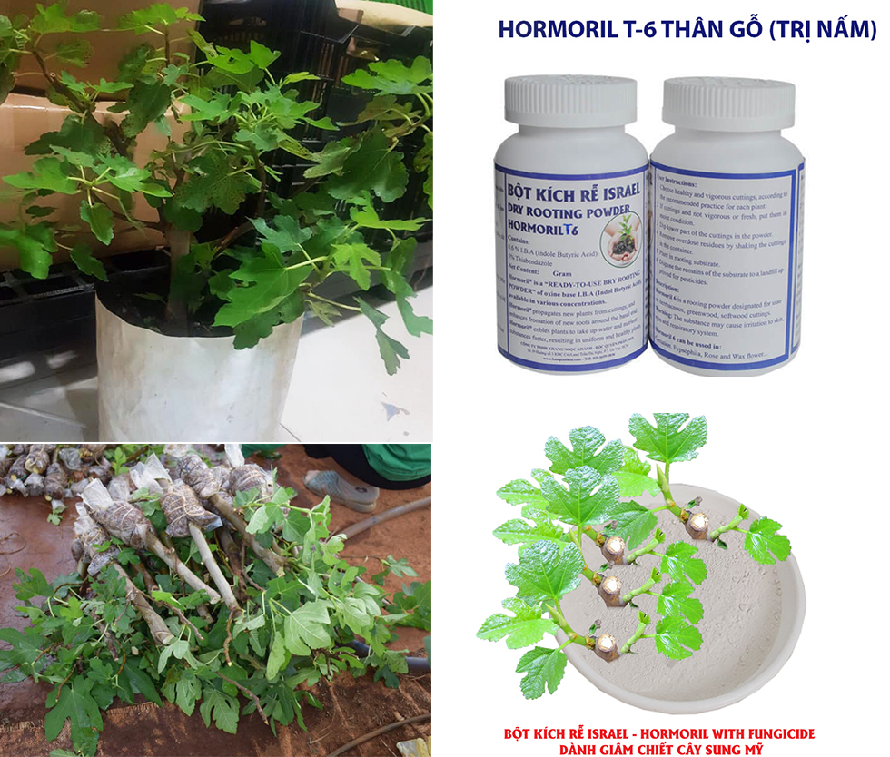• Bột kích rễ Israel Hormoril 6 (với 0.6% IBA) dùng kích ra rễ tốt trên cây gỗ như Hoa cẩm chướng (Carnation), hoa hồng (Rose), hoa Biby (Gypsophila), Hoa Wax (Wax Flower), Hoa Giấy, Sung Mỹ, Nho giống Nhật và khác …
