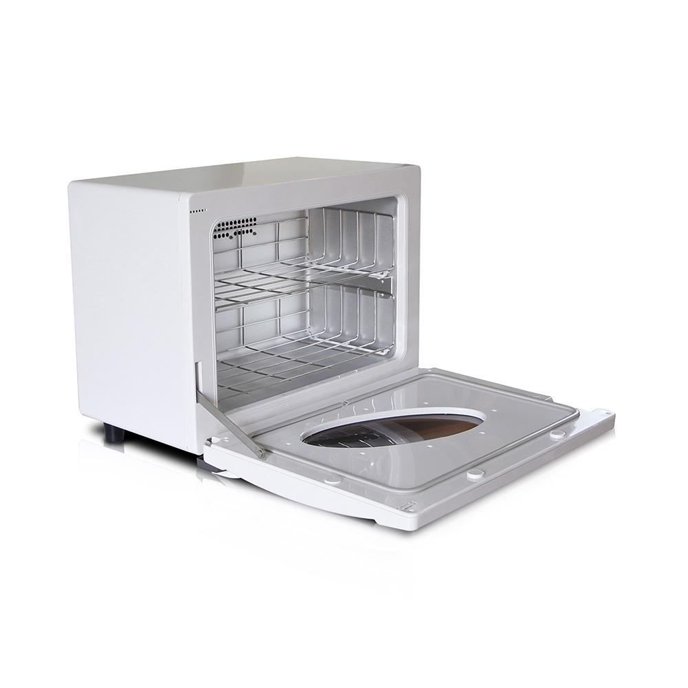 Máy làm ấm khăn với máy khử trùng bằng tia cực tím. Bảo vệ quá nhiệt kép. Công tắc Bật / Tắt riêng biệt để bảo vệ ánh sáng tia cực tím và tia cực tím. Đèn bật / tắt khi cửa đóng / mở. Cửa sổ bán trong suốt ngăn tia UV chiếu qua, trong khi đủ trong suốt để theo dõi quá trình nóng lên trong thiết bị.