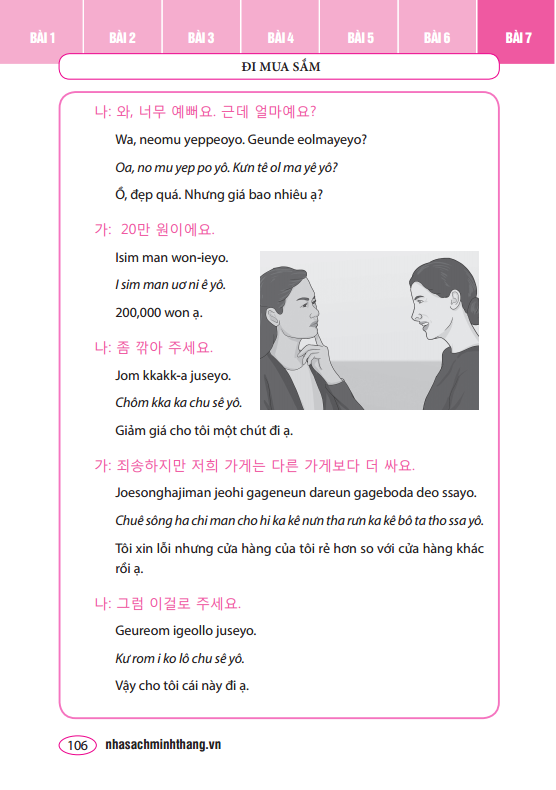 Tiếng Hàn Tổng Hợp Dành Cho Người Việt Nam - Sơ Cấp 1 Trong những năm gần đây, nhu cầu học tiếng Hàn và tìm hiểu về văn hóa Hàn Quốc đang có xu hướng tăng lên. Người học tiếng Hàn rất mong muốn có được một bộ giáo trình chuẩn, được biên soạn một cách tỉ mỉ và hữu ích nhất. Giáo trình tiếng Hàn tổng hợp lần đầu tiên được trao bản quyền chính thức tại Việt Nam Hiểu được điều đó, ngày 4-7, Đại diện chính phủ Hàn Quốc, ngài Woo Hyeong Min – Trưởng đại diện Văn phòng Quỹ giao lưu Quốc tế HQ tại Việt Nam cùng GS.TS.NGƯT Mai Ngọc Chừ – Chủ tịch Hội Nghiên cứu khoa học về Hàn Quốc của Việt Nam (KRAV) đã trao quyết định cho phép Công ty Cổ phần sách MCBooks của Việt Nam được xuất bản cuốn sách này tại thị trường Việt Nam. Và đây chính là bộ giáo trình tiếng Hàn tổng hợp đầu tiên có bản quyền chính thức có mặt tại Việt Nam. Cũng theo ông Woo Hyeong Min, Thực tế đây là bộ giáo trình chính thống mà tất cả người học tiếng Hàn tại Việt Nam cần sử dụng. Tuy nhiên nhiều năm qua bộ sách đến tay người dùng đều là sách lậu nên chưa đạt được kết quả mà chính phủ Hàn muốn mang tới Việt Nam. Do đó Chính phủ Hàn Quốc đã quyết định tìm 1 đơn vị xuất bản uy tín của Việt Nam để giúp họ mang đến cho người học những cuốn sách tiếng Hàn chất lượng tốt với giá cả hợp lý. Bộ giáo trình được Hội nghiên cứu khoa học Hàn Quốc của Việt Nam biên soạn và hiệu đính. Bộ giáo trình sẽ giúp nâng cao hiệu quả trong việc sử dụng ngôn ngữ Hàn sau tiếng mẹ đẻ và tiếng Anh, là nền tảng giúp người lao động Việt Nam nhận được những vị trí làm việc cao trong doanh nghiệp Hàn Quốc. Đây cũng là cách để thúc đẩy quan hệ hợp tác về văn hoá và giáo dục giữa hai nước trong thời gian tới. Giới thiệu cuốn Giáo trình tiếng Hàn tổng hợp dành cho người Việt Nam – Sơ cấp 1 Giáo trình tiếng Hàn tổng hợp dành cho người Việt Nam – Sơ cấp 1 được biên soạn dành cho người Việt Nam muốn học tiếng Hàn ở trình độ sơ cấp. Sách được biên soạn nhằm hướng tới việc sử dụng được trong các tiết học tiếng Hàn tại giảng đường đại học nên mỗi bài học được chia thành nhiều phần như: Lý thuyết cơ bản gồm từ vựng và cấu trúc ngữ pháp; phần luyện tập theo 4 kỹ năng giao tiếp như: Nghe – Nói – Đọc – Viết, phần luyện phát âm, phần tìm hiểu văn hóa… Các chủ đề trong sách được sắp xếp một cách có hệ thống và liên quan chặt chẽ với nhau. Giáo trình tiếng Hàn tổng hợp được biên soạn kèm theo một cuốn sách bài tập hỗ trợ giúp người học ôn tập kỹ hơn và có thể luyện tập nâng cao trong những trường hợp cần thiết. Nội dung trong Giáo trình tiếng Hàn tổng hợp – Sơ cấp 1 2 cuốn sách trong bộ Sơ cấp được xây dựng với 30 bài khóa và bảng chữ cái. Trong đó quyển 1 gồm phần bảng chữ cái và 15 bài đầu. Học hết quyển 1, bạn sẽ học đến quyển sơ cấp 2 với 15 bài còn lại. Cấu trúc tổng thể của giáo trình được xây dựng theo các chủ đề; mỗi chủ đề được liên kết thống nhất với một hệ thống các từ vựng và cấu trúc ngữ pháp cơ bản, bài tập ứng dụng, kỹ năng và tìm hiểu văn hóa. Trong mỗi bài học, nội dung học được chia thành các phần như: luyện từ vựng, luyện ngữ pháp cơ bản, luyện tập kỹ năng nghe – nói – đọc – viết, luyện phát âm, tìm hiểu văn hóa của đất nước Hàn Quốc xinh đẹp. Và kết thúc mỗi bài đều có thêm bảng từ mới xuất hiện trong bài học. Phần cuối của sách, các tác giả đưa ra hệ thống từ mới được sắp xếp theo thứ tự của bảng chữ cái. Đây là những từ không xuất hiện trong phần ngữ pháp, từ vựng cơ bản; nhưng lại xuất hiện nhiều ở phần luyện tập của từng bài.