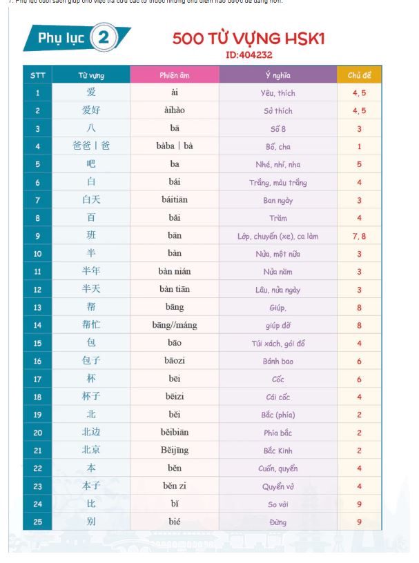 【HSK 9 CẤP】TỔNG HỢP 500 TỪ VỰNG HSK 1 ĐẦY ĐỦ NHẤT - BẢN MỚI - THEO TÀI LIỆU GIÁO TRÌNH HSK 9 CẤP