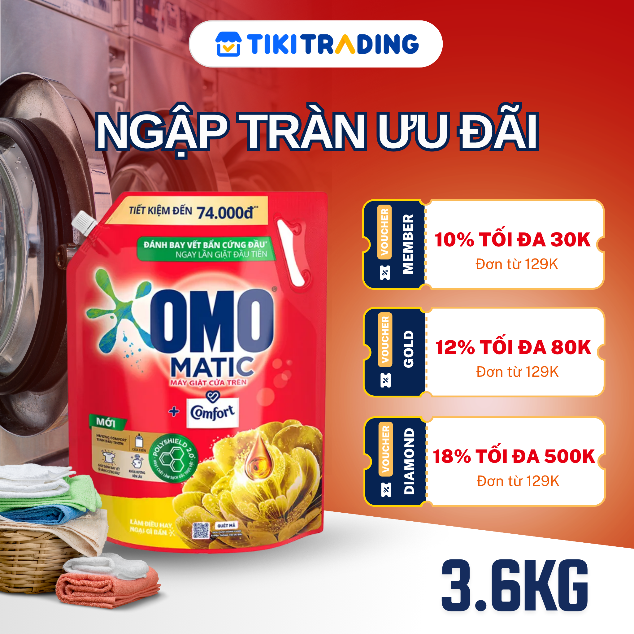 ✨Túi Nước Giặt Omo Matic Comfort Cho Máy Giặt Cửa Trên Hương Tinh Dầu Thơm Xoáy Bay Vết Bẩn, Hương Thơm Bền Lâu 3.6Kg