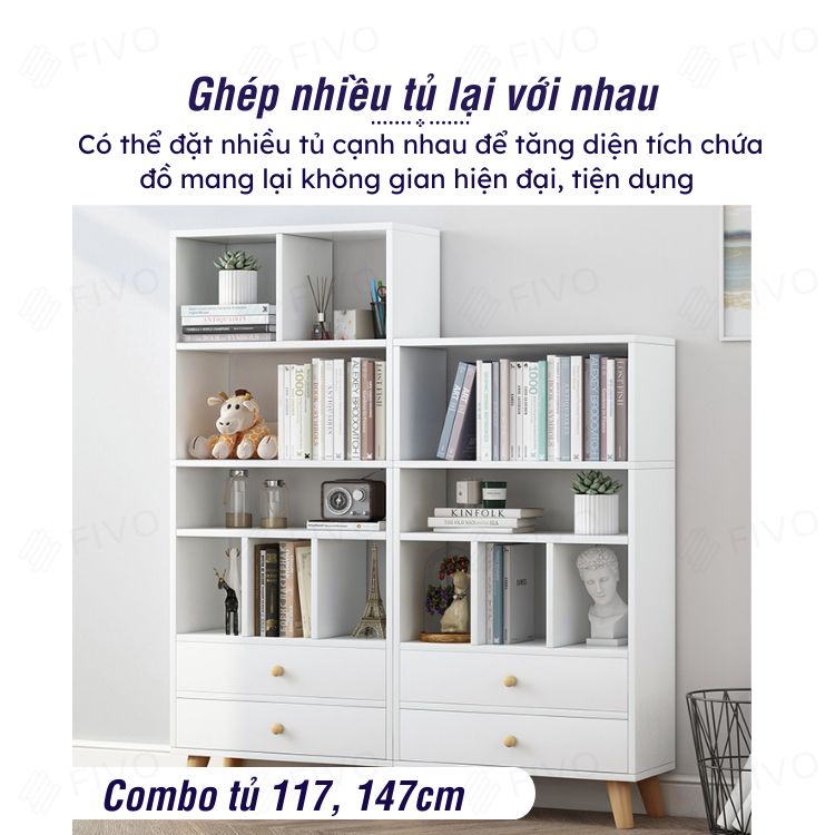 ✨Tủ Kệ Sách Trang Trí FIVO Mã FB61 Nội Thất Lắp Ráp Đơn Giản, Thiết Kế Nhiều Ngăn Và Hộc Tủ Mở Rộng Diện tích Đựng Đồ (Màu Trắng)