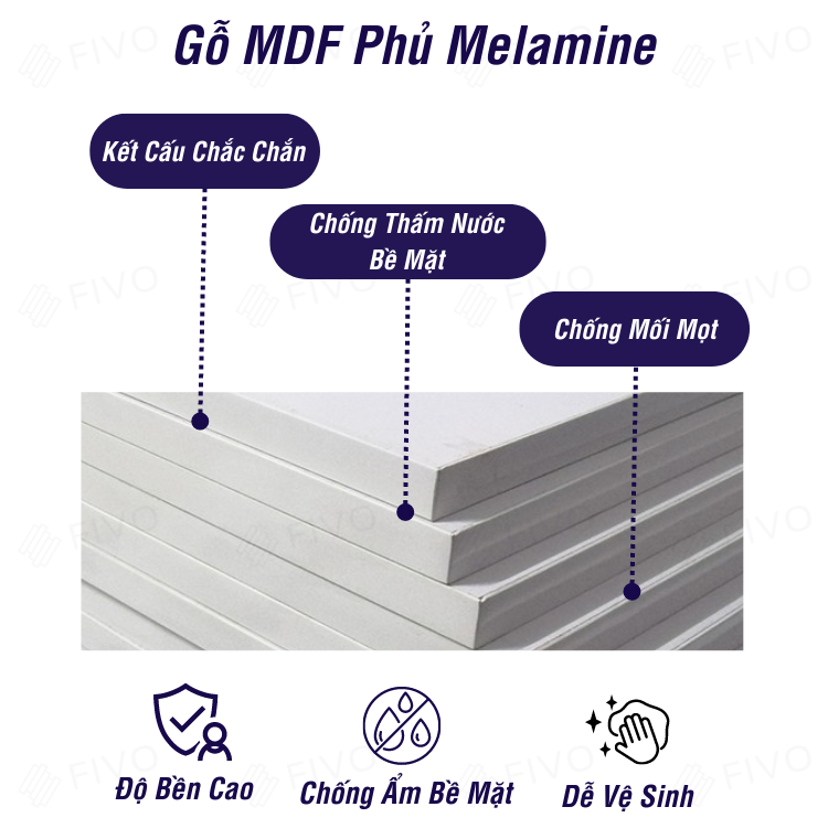 - Chất liệu: Gỗ MDF nhập khẩu phủ melamin chống xước và chống nước dễ dàng vệ sinh.