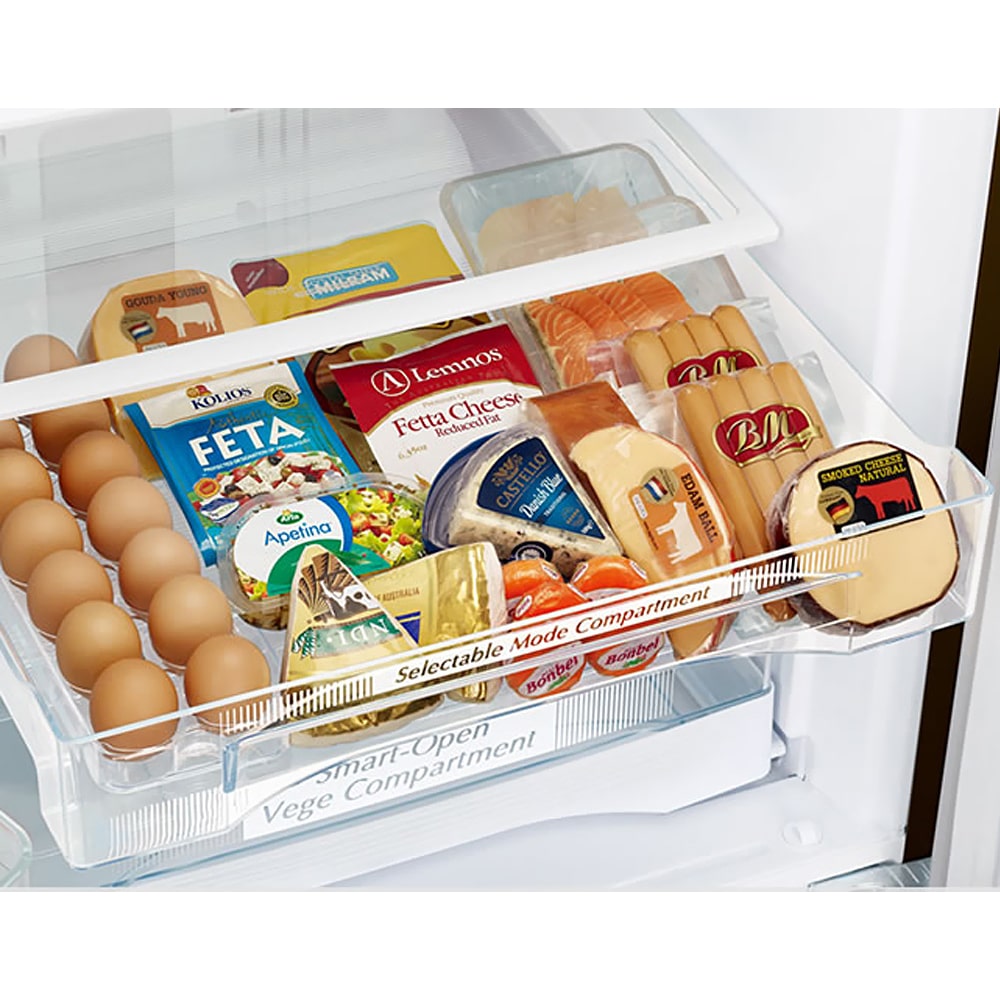 Ngăn trữ chuyển đổi được Tủ lạnh dễ chuyển đổi giữa ngăn trữ Sữa/Thịt và Rau quả, bằng cách điều chỉnh nhiệt độ trong ngăn. Chế độ trữ rau quả lưu trữ trái cây và rau quả dễ hư, thực phẩm nhiều kích cỡ. Chế độ trữ Sữa/Thịt giữ thịt và cá luôn tươi ngon, rã đông thực phẩm, làm mát thức uống nhanh.